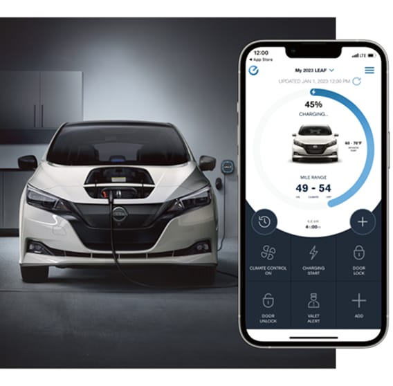 Download the NissanConnect® EV & Services app to control select vehicle charging functions and keep tabs on your battery status.